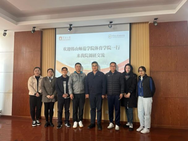 近日,韩山师范学院黑料 院长刘会成一行来我院调研交流。黑料 教学副院长赵亮、运动训练专业系主任龚镇、副主任张妍,教务办主任华颖出席会议,会议由赵亮主持。