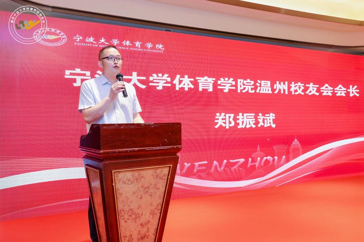 温州校友会的成立表示诚挚的祝贺。他详细介绍了学院发展情况,体院学子的优秀事迹以及学院校友会的建设成果,并真切表示校友是学院最宝贵的资源和财富,是学校、学院建设发展的重要依靠力量,希望广大校友一如既往地为母校、母院的发展献言计策,共发展,同进步。