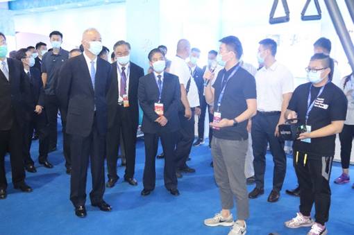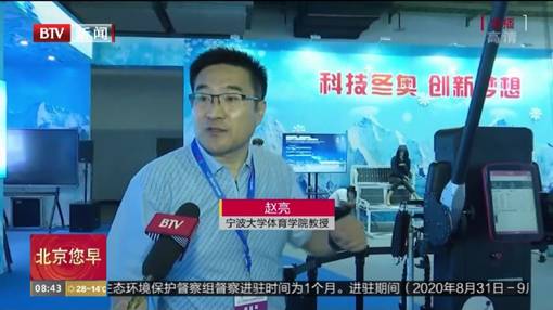 16日上午,中央政治局委员北京市市委书记蔡奇书记一行对“T232无轨迹数字化训练系统”展位进行访问,赵亮教授等人针对该训练系统的功能向蔡奇书记进行了简要汇报(图三)。19日上午,北京电视台对赵亮教授进行了采访(图四)。接受采访时赵亮教授表示,T232无轨迹数字化训练系统目前已经成功应用于在国家残疾人单板滑雪训练队,他希望通过应用得到反馈并做进一步设计提升,从而将训练系统应用到冬季各大项目残疾人训练队,帮助中国残疾人运动员在即将到来的北京2022年冬残奥会上取得更加优异的成绩!