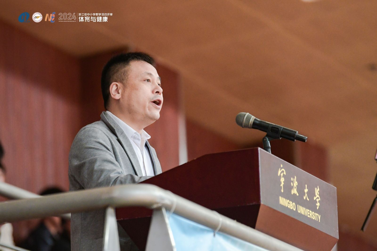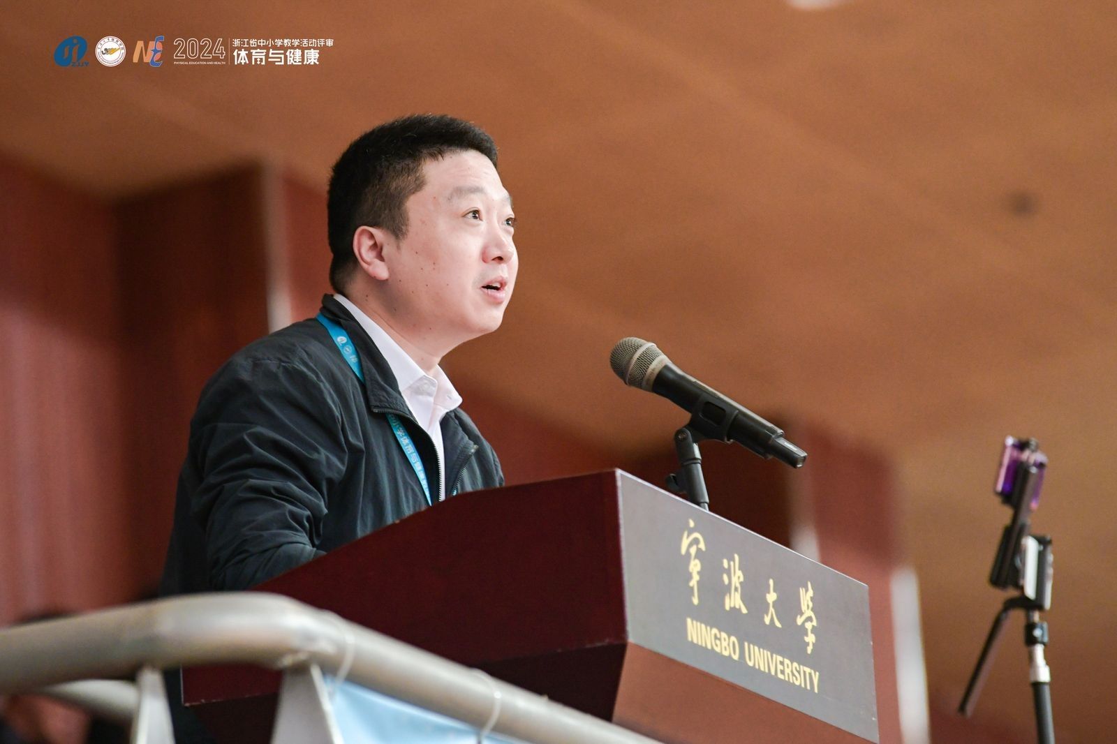 院长顾耀东,宁波市教育局教研室副主任叶琪飞,浙江省教育厅教研室体育教研员余立峰分别发表了致辞。评审内容涵盖广播操、武术操、队列队形、武术、体操、篮球、排球、足球等项目,包括说课模拟课、教学设计和教学录像课等环节,涉及小学、初中和高中三个组别体育教师。