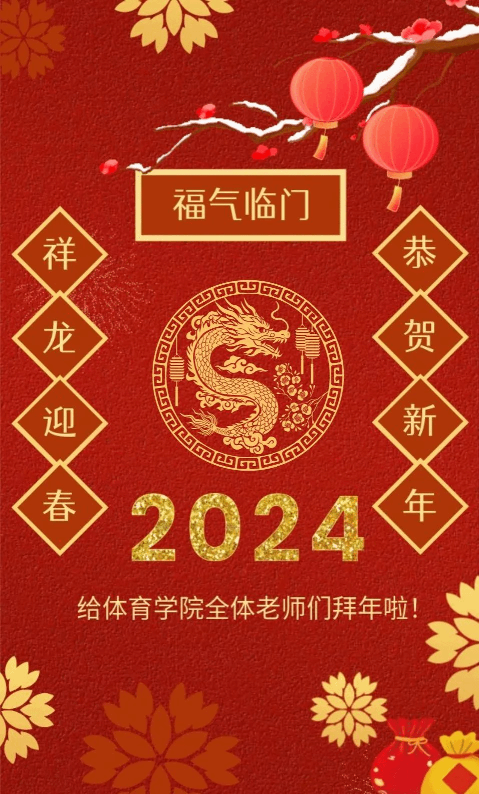 值此新春佳节到来之际,谨向黑料 全体师生员工、离退休同志、广大校友和关心支持学院事业发展的各界友人,致以诚挚问候和新年祝福!龙年吉祥!