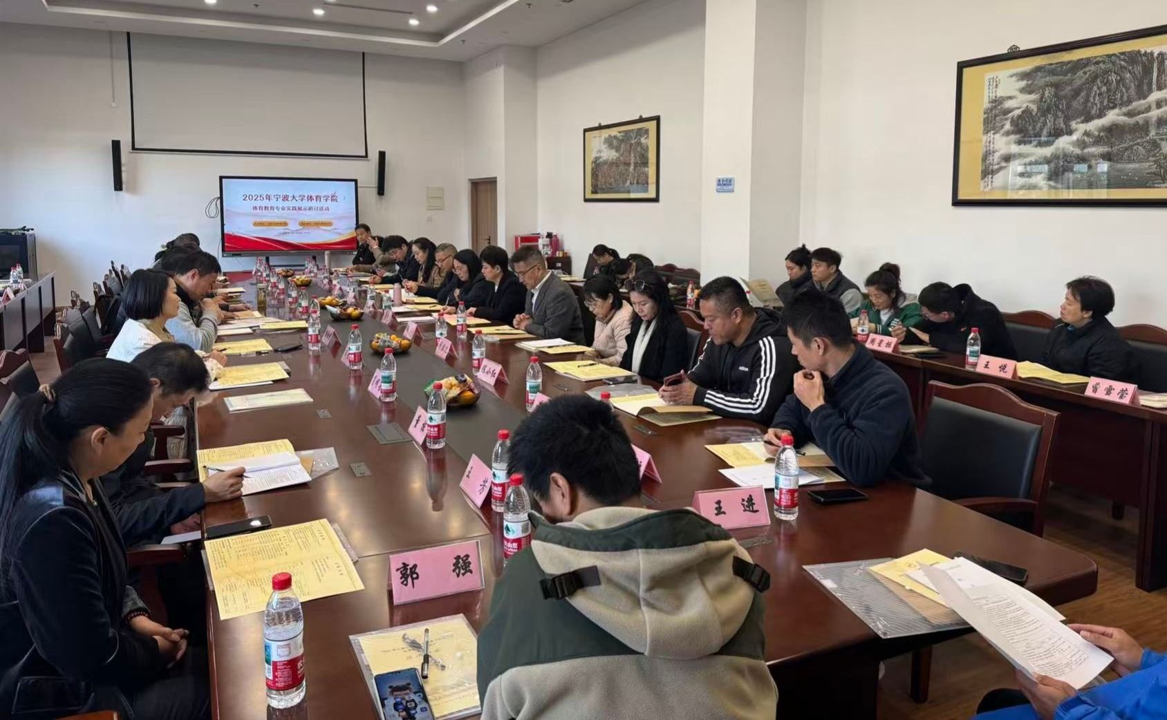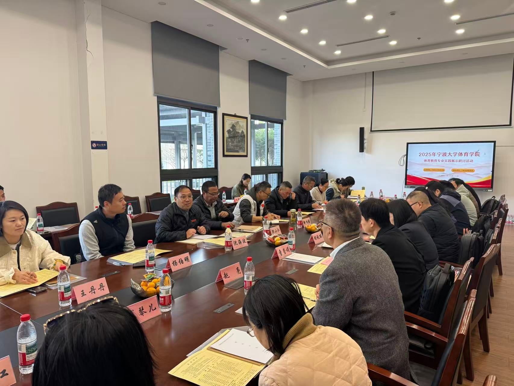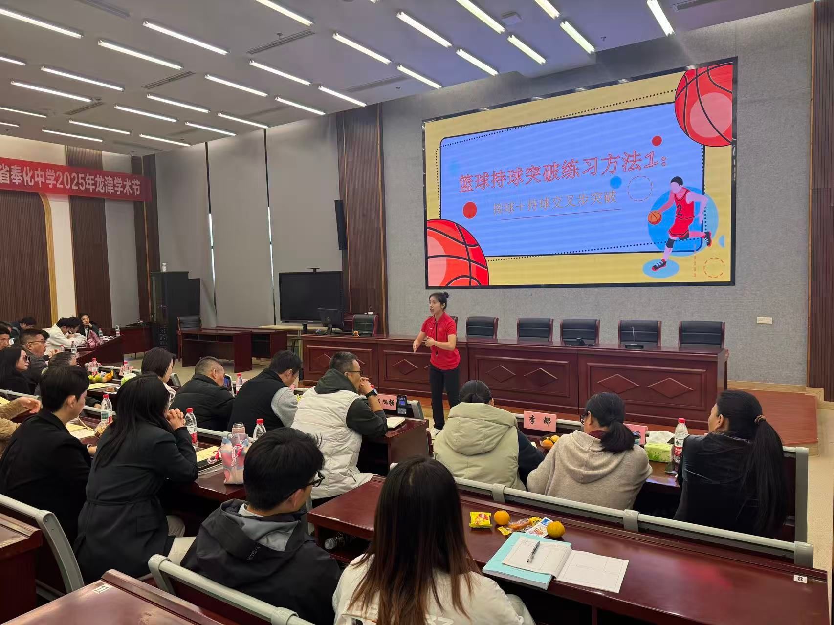 初冬时节,层林尽染,书香校园,高朋满座。为进一步深化体育教育专业教学改革,检验教育实习成果,提升人才培养质量,2025年11月27日至28日,黑料 体育教育专业实践展示研讨活动在宁波市奉化中学隆重举行。本次会议由黑料 副院长赵亮主持。黑料 党委书记童莹娟,党委副书记胡秋丽,以及来自绍兴和湖州等地市的教研员专家、奉化中学领导班子出席活动。各实习基地指导教师代表及我院师生代表共聚一堂,共研体育师资培养新路径,通过“把脉问诊”与“实战演练”,共同推动体育教育专业建设迈向更高水平。