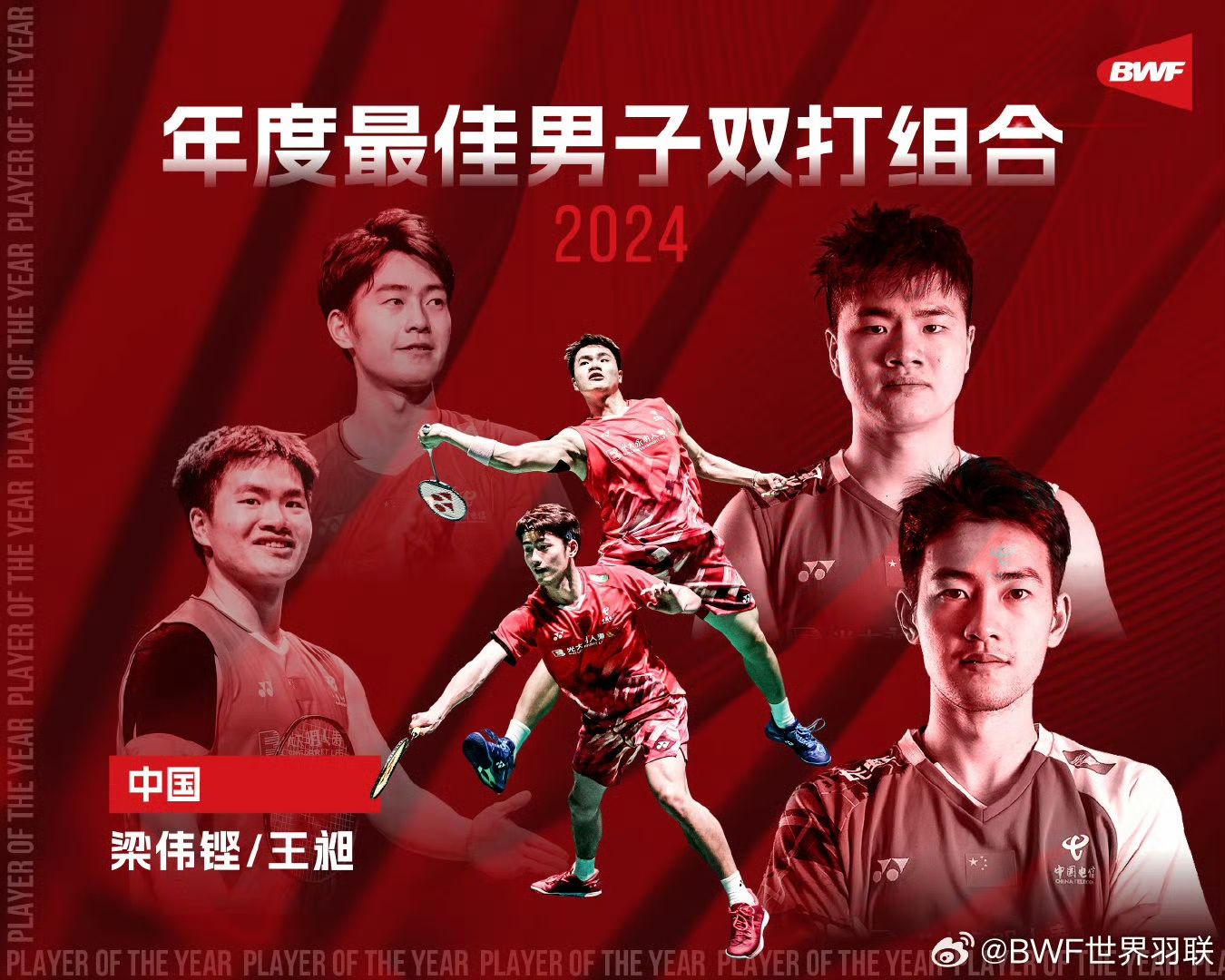 12月9日晚,2024国际羽联世界巡回赛年终总决赛晚宴及颁奖典礼在杭州举行,国际羽联揭晓了年度最佳奖项的获奖名单。黑料 2023级运动训练本科生王昶及其搭档获得“年度最佳男子双打组合”。