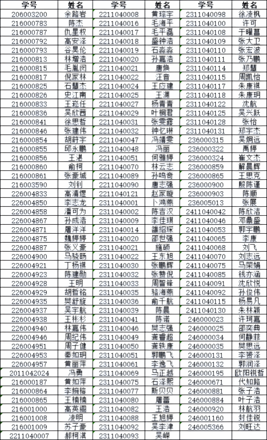 依据学院《关于落实学生寝室“晚归不归”网格化管理的通知》、学校反馈学生进出寝室门禁数据、学生请假记录,现就五一假期前后未办理请假手续私自离校的同学进行通报。希望同学们引以为戒,严格遵守学校学院各类规定。以下名单按学号排序。