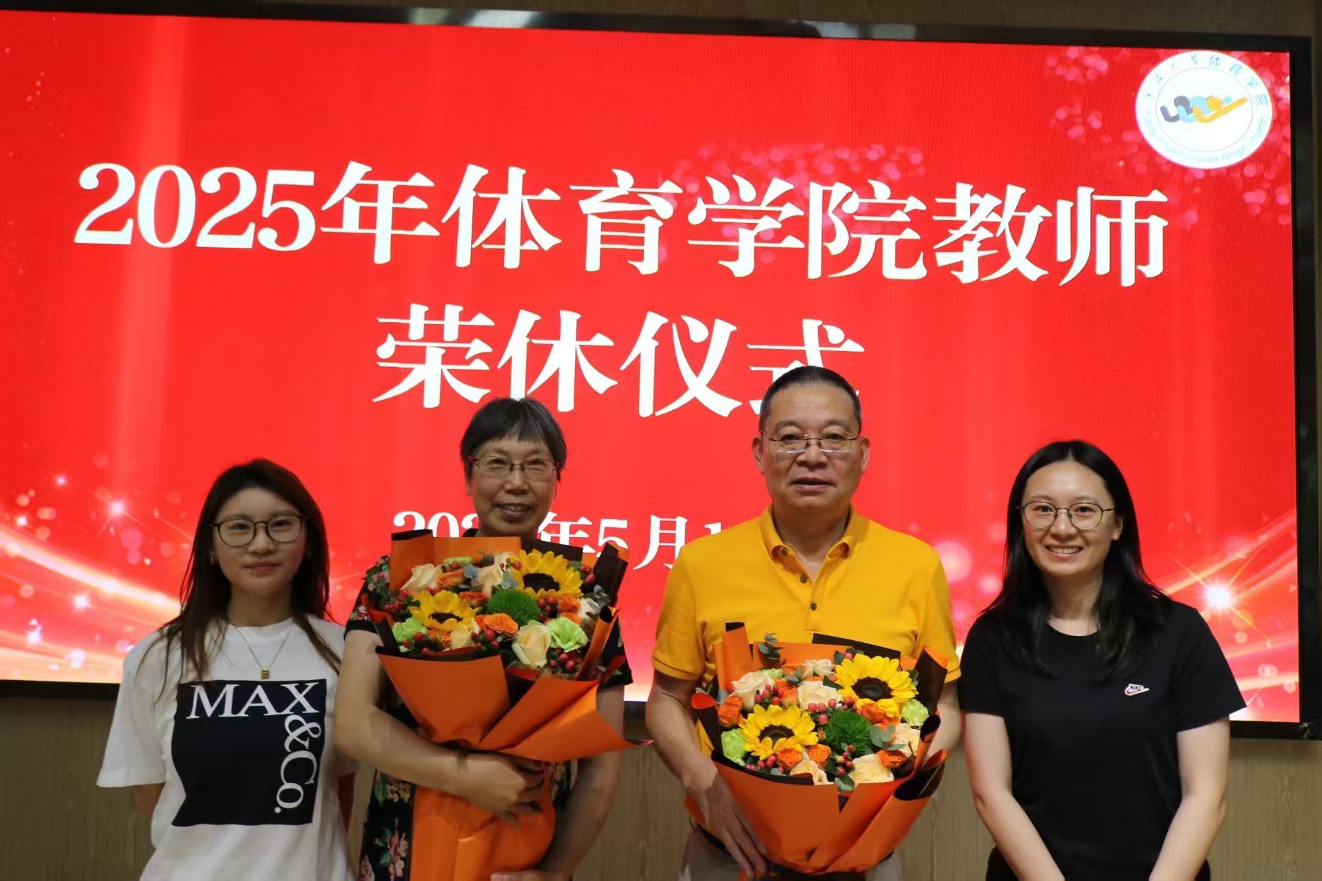本次活动由胡秋丽副书记主持,活动以“时光长廊”主题展览拉开序幕,回顾了谢丽娜和周奕君两位退休教师的从教生涯。学院党委书记童莹娟在致辞中感慨:“从青丝到白发,两位老师用30余载坚守诠释了‘以体育人’的使命。”